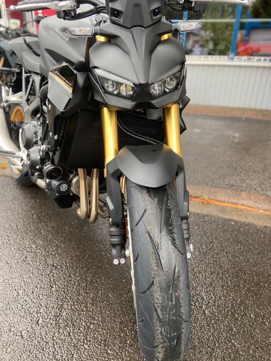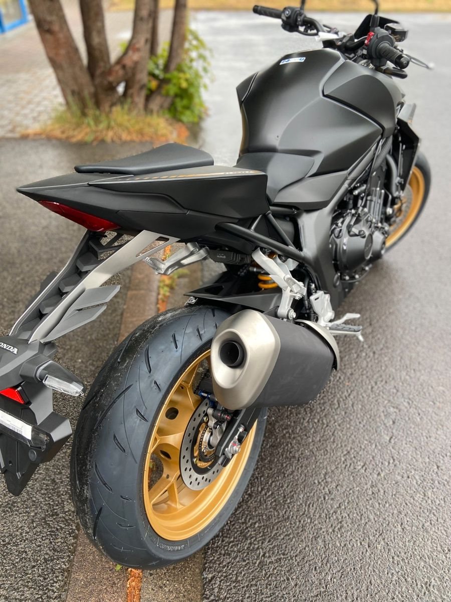 Die Hornet-Familie ist jetzt vollständig und unser Topmodell sticht heraus. Die neue CB1000 Hornet mit ihrem Vierzylindermotor ist ein erstklassiges Naked Bike, das den Asphalt zum Glühen bringt. Throttle By Wire sorgt für präzise Kontrolle, während das Fahrwerk mit der einstellbaren SHOWA 41mm SFF-BP Upside-Down-Gabel und dem Pro-Link-Federbein ausgestattet ist. Die unverfälschte, aggressive Streetfighter-Attitüde wird durch einen markanten LED-Doppelscheinwerfer unterstrichen. Das 5-Zoll TFT-Farbdisplay und die Honda RoadSync-Konnektivität sorgen für die nötigen Informationen. Kann es losgehen?